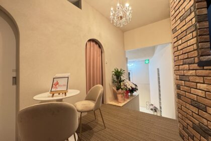 豊橋ビル内に新しくオープンするエステサロンの内装工事。 BEFOREでは無機質な空間だったエントランスを、柔